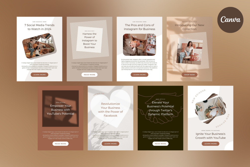 Any photos pictured aren't included and are for display purposes only, but Canva includes 1000s of beautiful images for you to choose from.