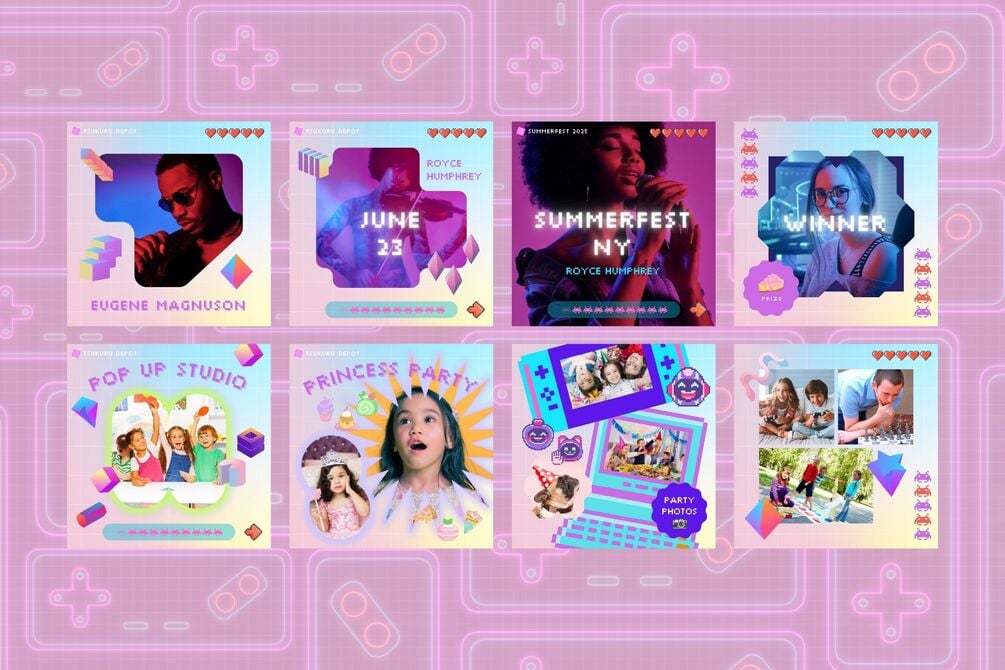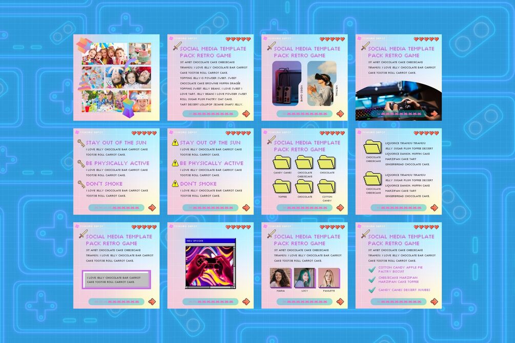 48 Instagram Template Canva Post Game - Retro Summer Fun Cute Photo Frame Social Media