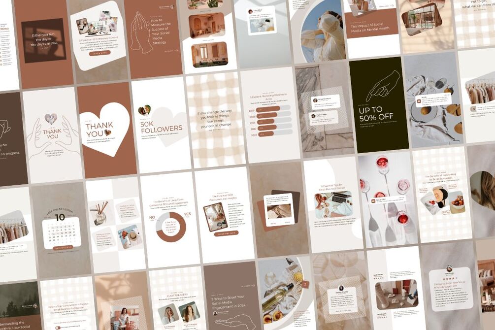 This modern, clean, and editable all-purpose Instagram template pack is perfect for savvy business owners on a budget looking to brand themselves professionally.
