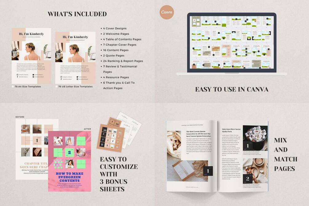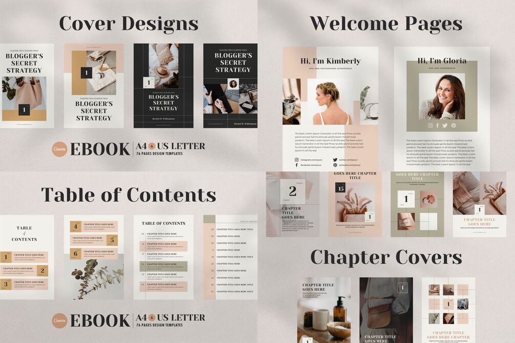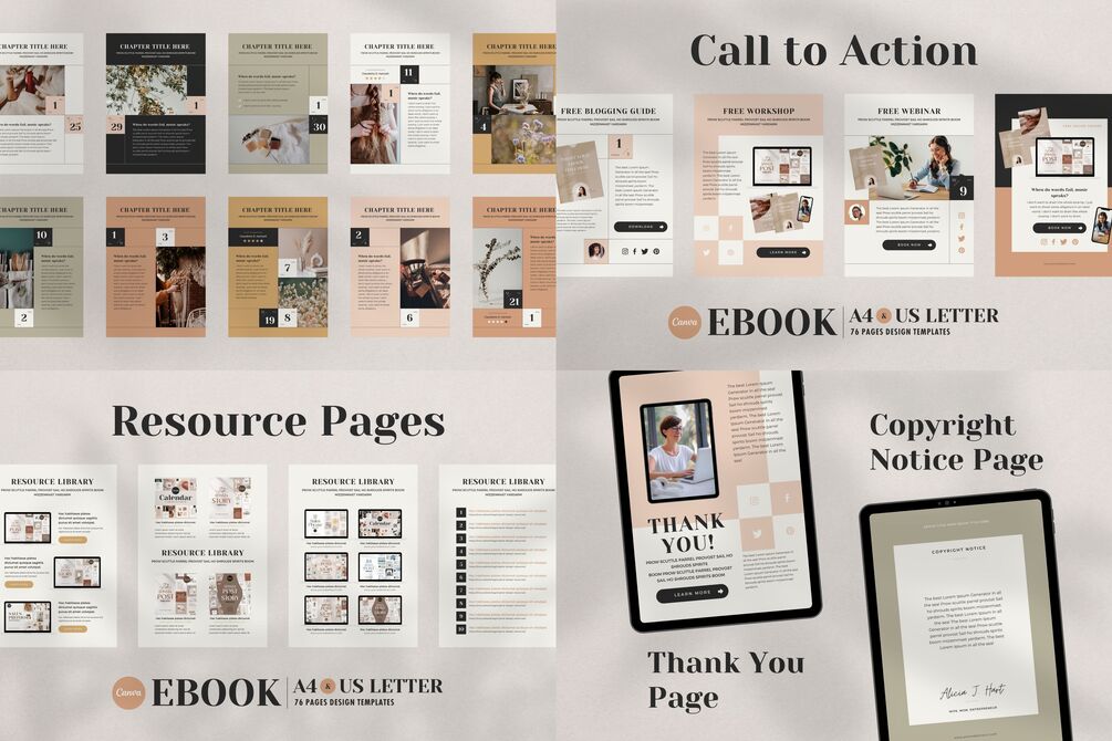 76 eBook Templates Canva Calendar - A4 & US Letter